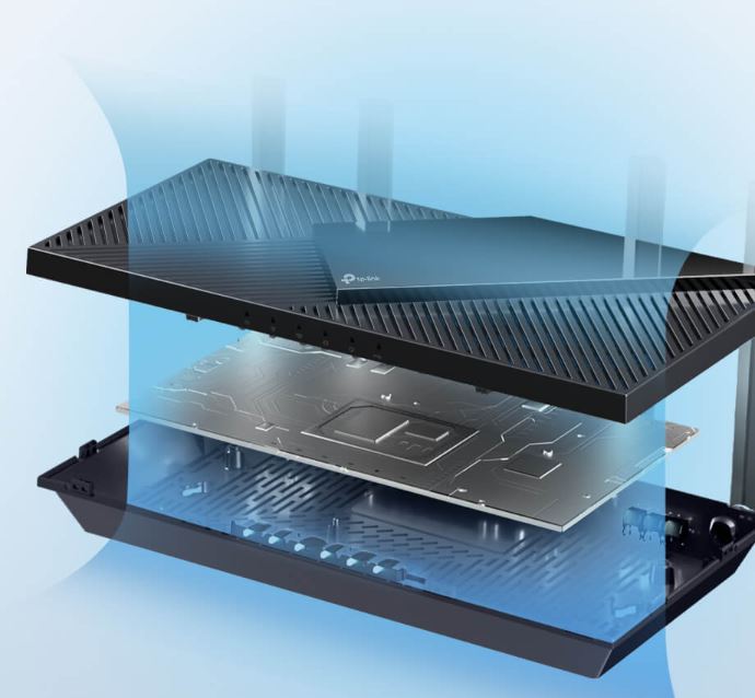 ŽádnĂ© zahĹ™ĂvánĂ. VÄ›tšà chladiÄŤ a propracovanĂ˝ design pouzdra ochlazujĂ systĂ©m WiFi 6 a umoĹľĹujĂ vašà sĂti udrĹľet si maximálnĂ rychlost.