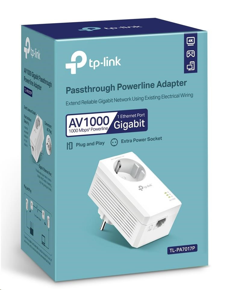 BAZAR - TP-Link TL-PA7017P průchozí powerline adaptér (AV1000,1xGbE, HomePlug AV2) - rozbaleno