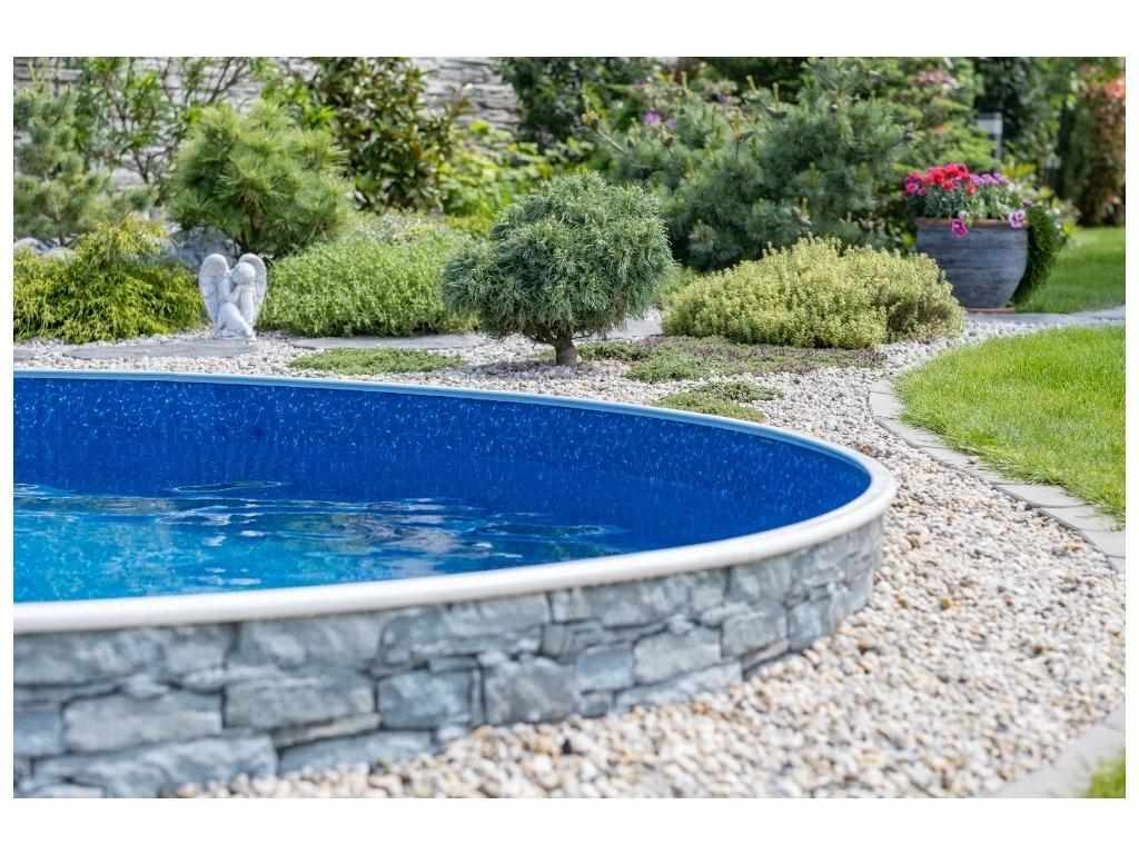 Bazénová fólie Waves pro bazény s plechovou stěnou o průměru 5,5 m a hloubce až 1,2 m. Fólie je vhodná jak pro nové bazény, tak i na výměnu do již postavených bazénů.