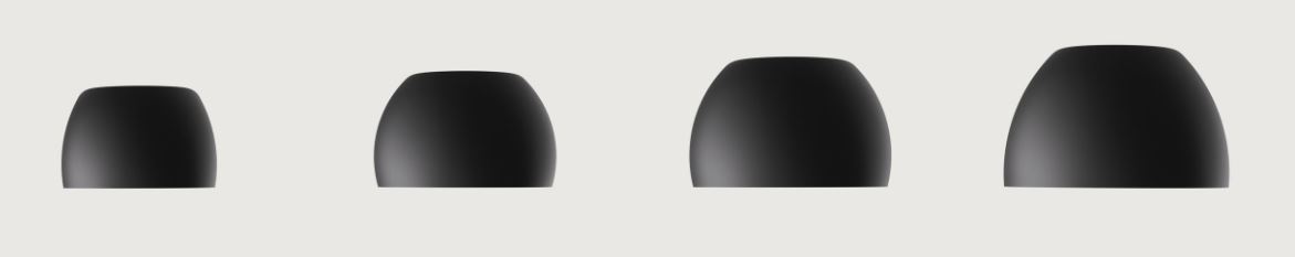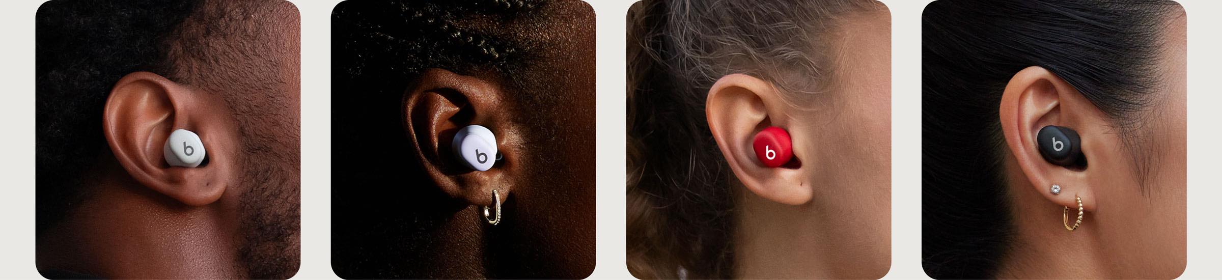 Kvůli pohodlí a pasivní izolaci hluku v uších nejrůznějších tvarů se sluchátka Beats Solo Buds prodávají se špunty ve čtyřech velikostech – velkými, středními, malými a extra malými.