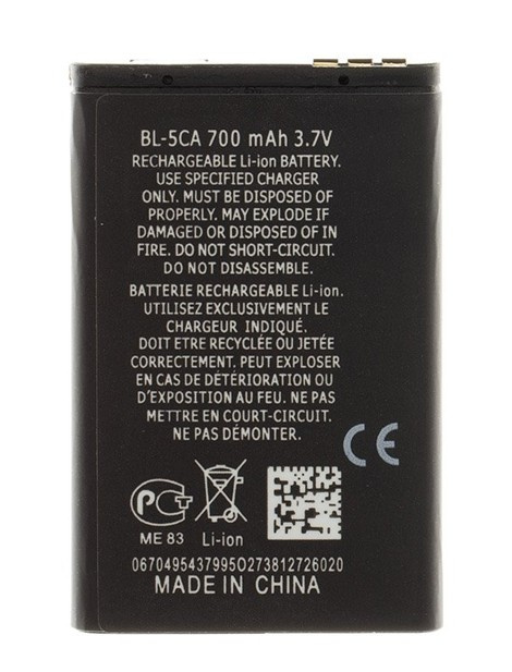 BL-5CA Baterie pro Nokia Li-Ion 700mAh (OEM) Nokia 1110, 1111, 1112, 1200, 1208, 1209, 1680c Nejedná se o originální baterii.