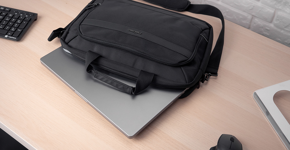 - Brašna pro notebooky do velikosti 15,6“ z odolných materiálů odolných proti oděru.