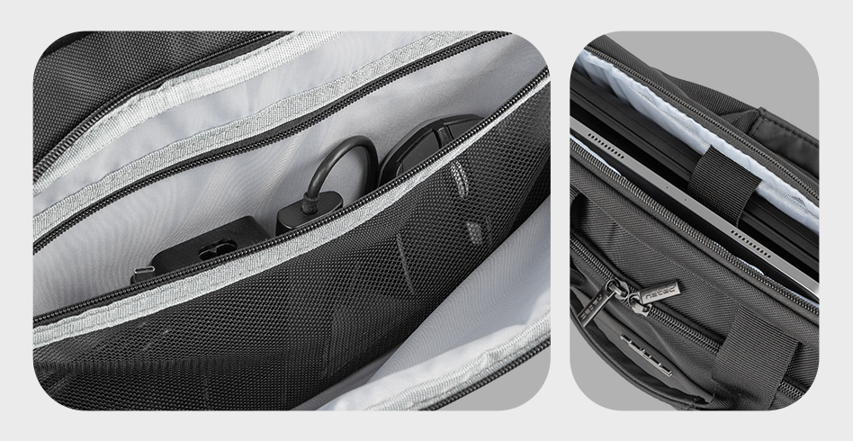 Objemná hlavní přihrádka není vše. Natec Kudu je vybaven další přihrádkou se síťovanou kapsou na zip. Ta vám umožní uspořádat a zajistit příslušenství tak, aby zůstalo na svém místě i během cestování. Kabely, nabíječky, myš - to vše můžete mít vždy po ruce.