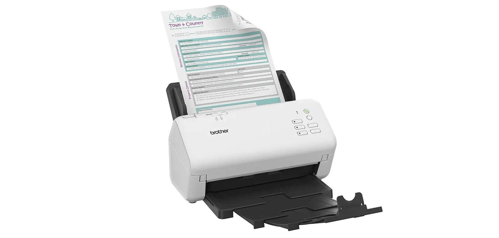 Díky vestavěnému ultrazvukovému vícenásobnému podávání pro eliminaci chybného podávání má zařízení ADS-4300N velkou kapacitu automatického podavače dokumentů na 80 listů a rychle skenuje až 40 stran za minutu. Přepínač pro oddělování umožňuje velmi silné a tenké dokumenty, plastové karty a zmačkaný papír pro snadné podávání.