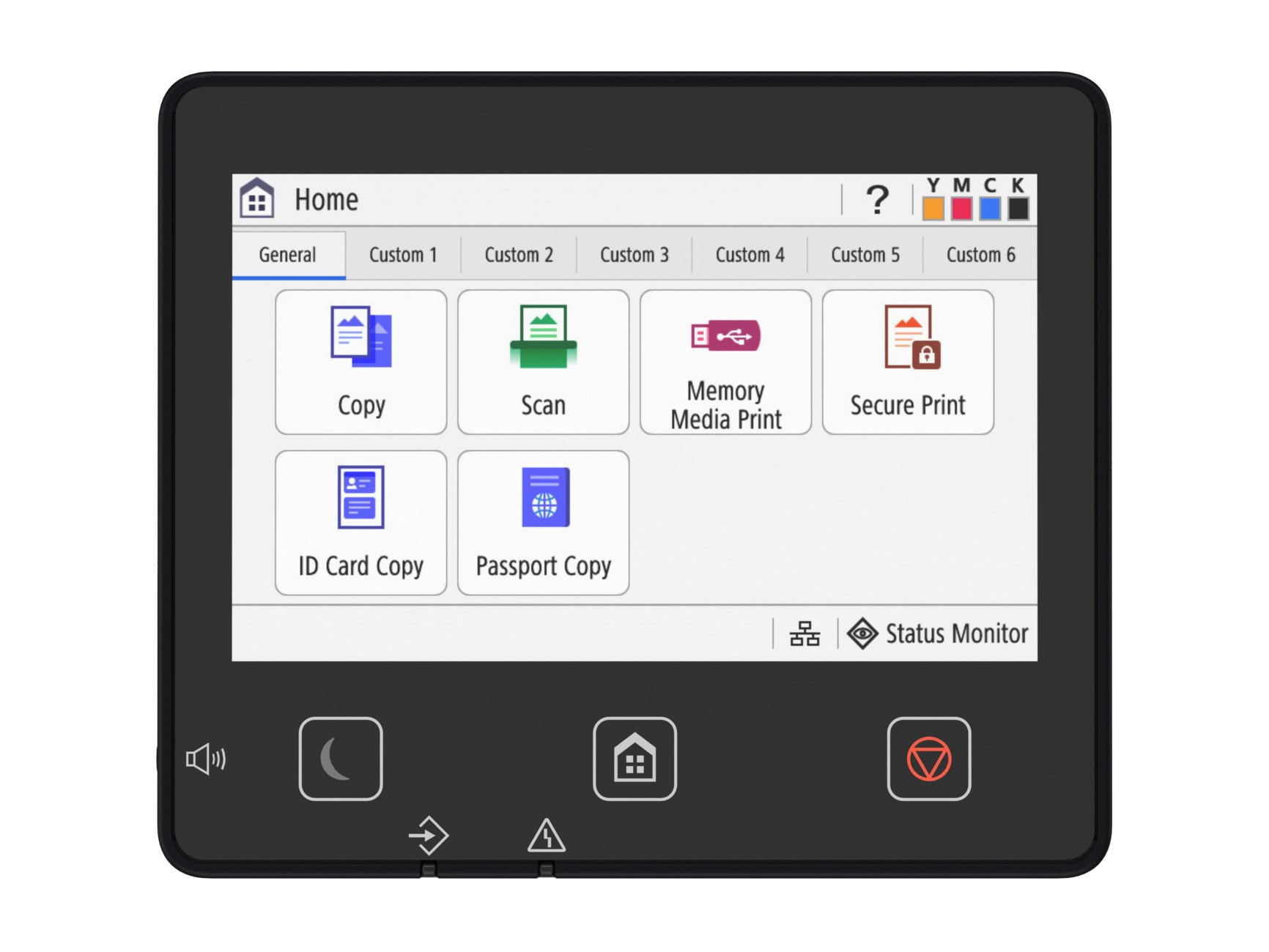 | Další funkce | Předvolené poměry, Hustota, Typ originálu, Oboustranný originál, Třídění, N na 1, Ostrost, Mazání okrajů, Kopie ID, Kopie pasu, Barevný režim, Rezervovaná kopie |