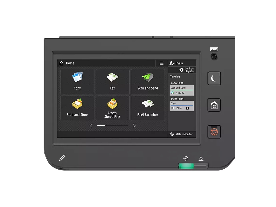 Kapacita zásoby papíru (A4, 80 g/m2): Standardně: 1 200 listů; Maximálně: 2 300 listů (s jednotkou zásobníku papíru AW1 (Cassette Feeding Unit-AW1))