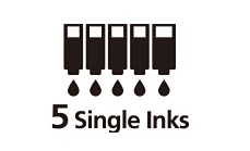Technologie tisku: 5 samostatných zásobníků inkoustu (PGBK, BK, C, M, Y)