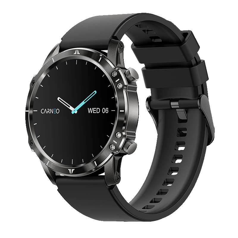 Moderní outdoorové fitness chytré hodinky Carneo ADVENTURE HR+ druhé generace v elegantní černé barvě mají kulatý barevný displej SUPER AMOLED chráněný extrémně tvrdým sklem Gorilla. Umožňují měřit srdeční tep, stres, BMI, ujetou vzdálenost, sledovat spálené kalorie nebo kvalitu spánku. Obsahují 380mAh baterii s výdrží až 5 dní. Podle certifikace IP67 jsou odolné proti vodě a prachu. Jsou kompatibilní s operačními systémy iOS a Android. Hodinky mají na dotek příjemný silikonový řemínek v černé barvě, který lze vyměnit za řemínek v jiné barvě nebo kožený či kovový a změnit tak sportovní vzhled hodinek za manažerský. Vkusný outdoorově-luxusní design lze snadno kombinovat s oblekem nebo volnočasovým oblečením. Hodinky i aplikace jsou kompletně v češtině, takže si s nimi určitě dobře porozumíte.