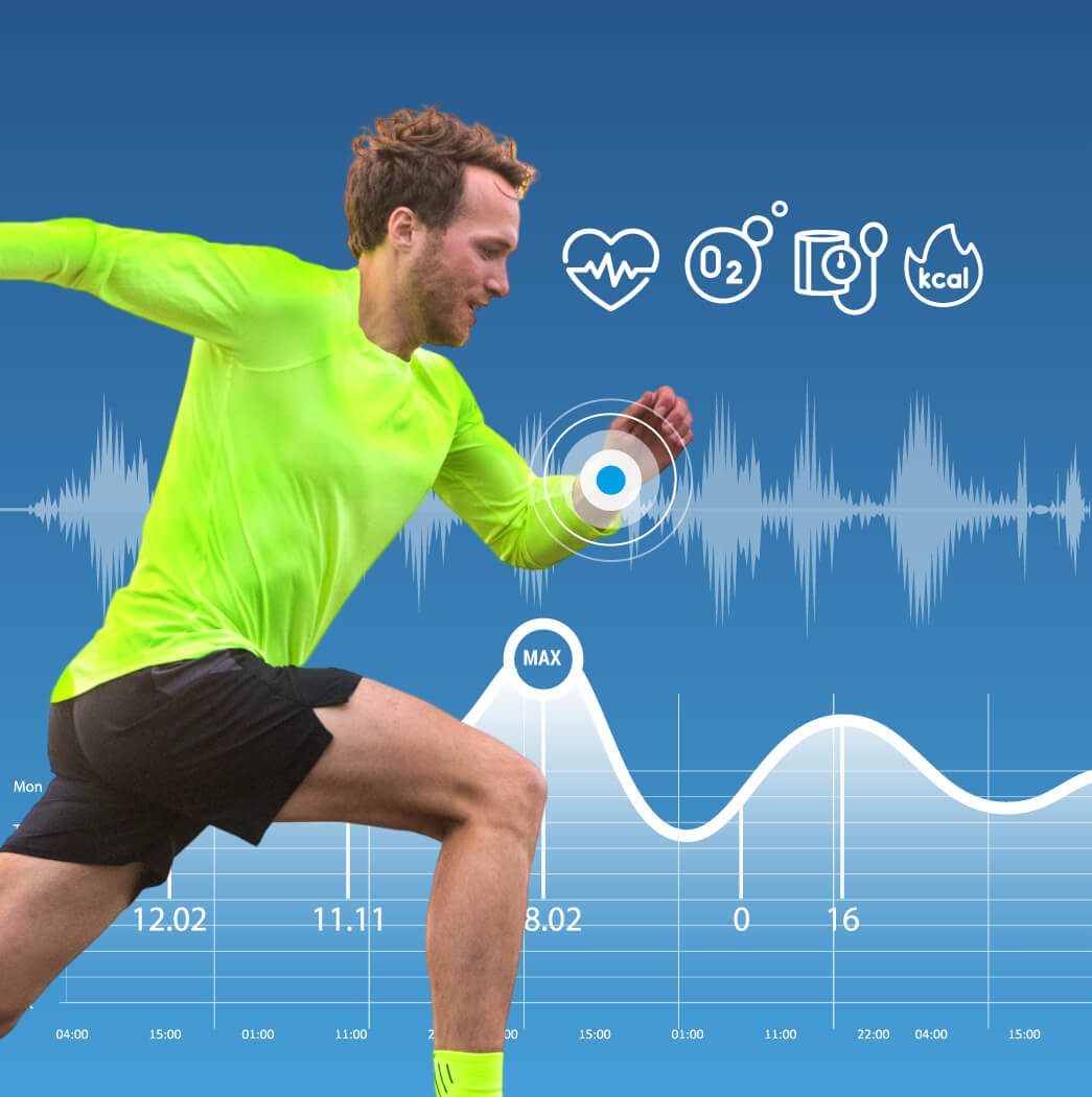 98 sportovních režimů (chůze, běh, lezení, jízda na kole, basketbal, bedminton, fotbal, eliptický trenažér, stolní tenis, švihadlo, tenis, baseball, kriket, golf, běžecký pás, Bojová umění, Box, Judo, Karate, Kickbox, Šerm, Taekwondo, Zápas, Aeorobic, Flexibilita, Gymnastika, Maraton, Pilates, Volný styl, Atletika, Kardio, Posilování, Turistika, Stac. Cyklistika, Plavání a další. ) Přehledně zobrazovat všechny potřebné údaje během aktivity, jako je aktuální tepová frekvence, vzdálenost, spálené kalorie, celkový čas aktivity, nebo zobrazit trasu na mapě díky GPS v telefonu.