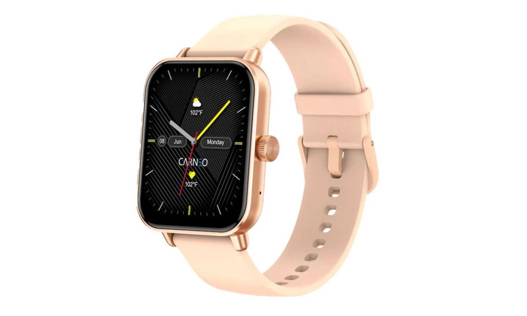 Moderní fitness hodinky Carneo Versa HR+ v elegantním růžovozlatém provedení jsou vybaveny barevným displejem IPS, který lze aktivovat pouhým otočením ruky. Měří tělesnou teplotu, krevní tlak, okysličení krve, srdeční tep, ušlou vzdálenost, monitorují spálené kalorie a kvalitu spánku. Jejich součástí je baterie s výdrží cca 3-5 dní. Podle certifikace IP67 jsou odolné vůči vodě a prachu. Hodinky s podporou technologie Bluetooth jsou kompatibilní s operačním systémem iOS a Android. Silikonový náramek s kovovou přezkou je příjemný na dotek a zaručuje komfort během celého dne.