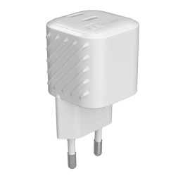 GaN Wall mini chargers s výstupním výkonem 36W a originálním desingem. Je to nejmenší nabíječka ve své kategorii a má unikátní dělení výstupního portu. Má dva USB-C výstupy, Maximální výkon nezávislý na portu. 36W – při společném zapojení se dělí výkon na půl