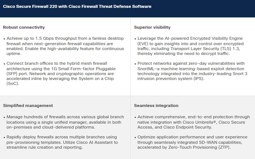 *Produkt: Cisco Secure Firewall 220 Appliance s předinstalovaným softwarem ASA