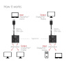 Club 3D CSV-1009 je všestranný přepínač DisplayPort, který umožňuje snadno přepínat mezi dvěma zdroji na jednom monitoru, nebo směrovat jeden zdroj na jeden ze dvou monitorů při rozlišení až 8K. Tento obousměrný 2v1 přepínač podporuje specifikaci DP1.4, video rozlišení až 7680 × 4320 při 60 Hz a funkce HDR, DSC a průchod HDCP.