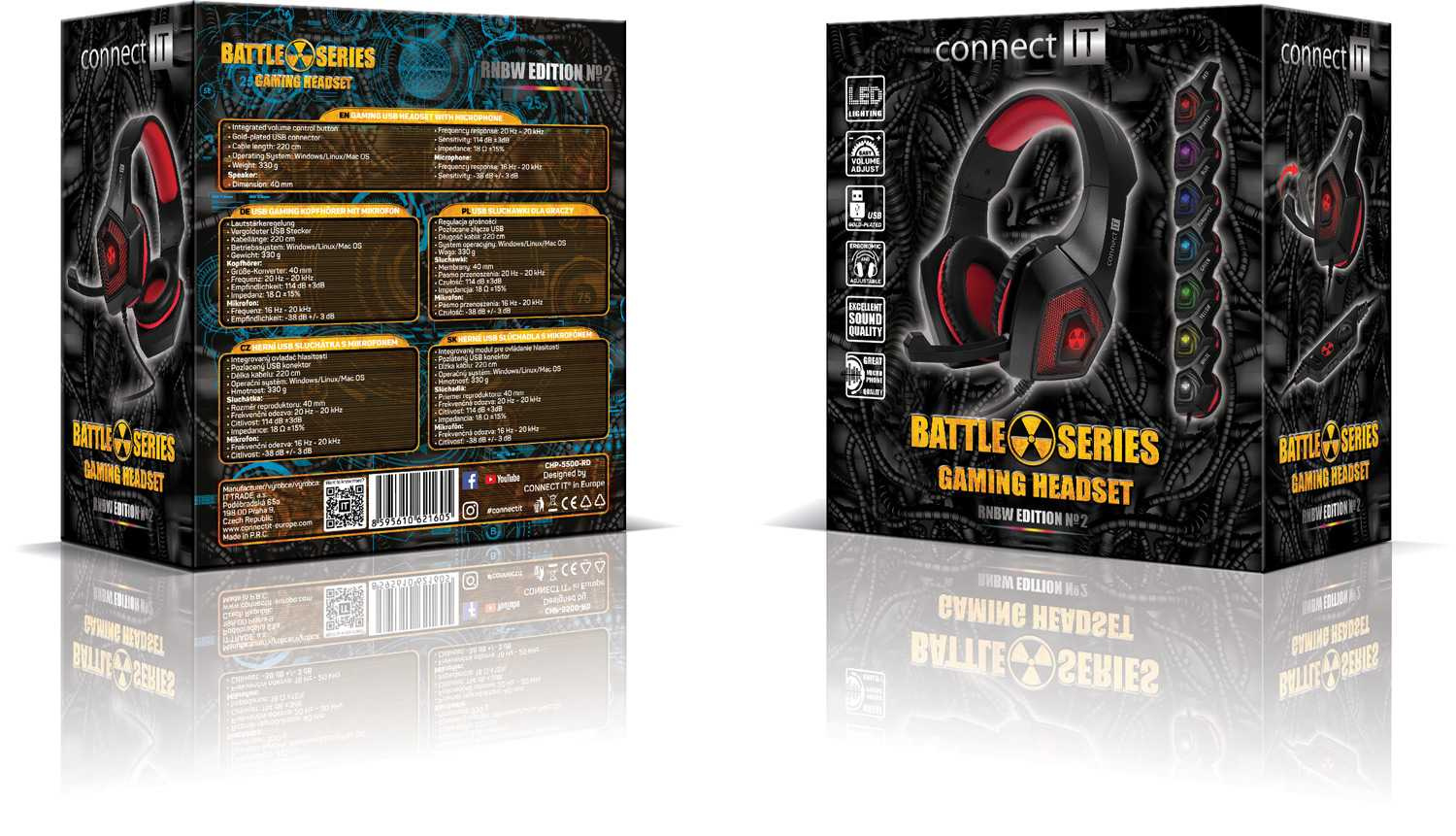 Profesionální gamingová sluchátka se sklápěcím mikrofonem BATTLE RNBW SERIES Edition 2 s podsvětlením pro hráče počítačových her