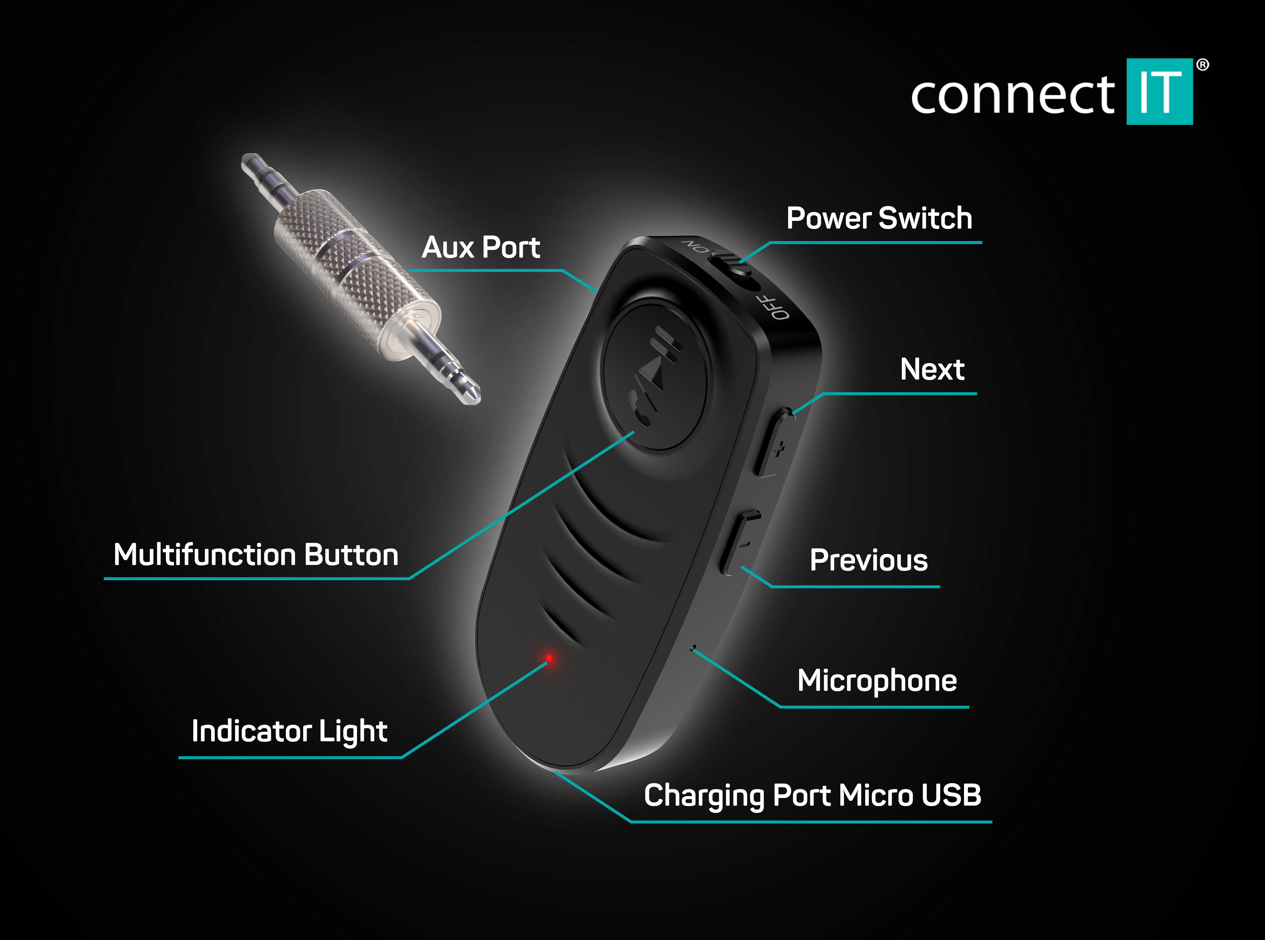 Přeměňte své starší autorádio, domací stereo a další audio zařízení na bezdrátové pouze propojením 3,5mm Jack kabelem. Budete moci nejen streamovat hudbu ze svého chytrého telefonu, ale díky zabudovanému mikrofonu i přijímat hovory handsfree. Vzhledem k jeho kompaktnímu provedení vám nezabere téměř žádné místo.