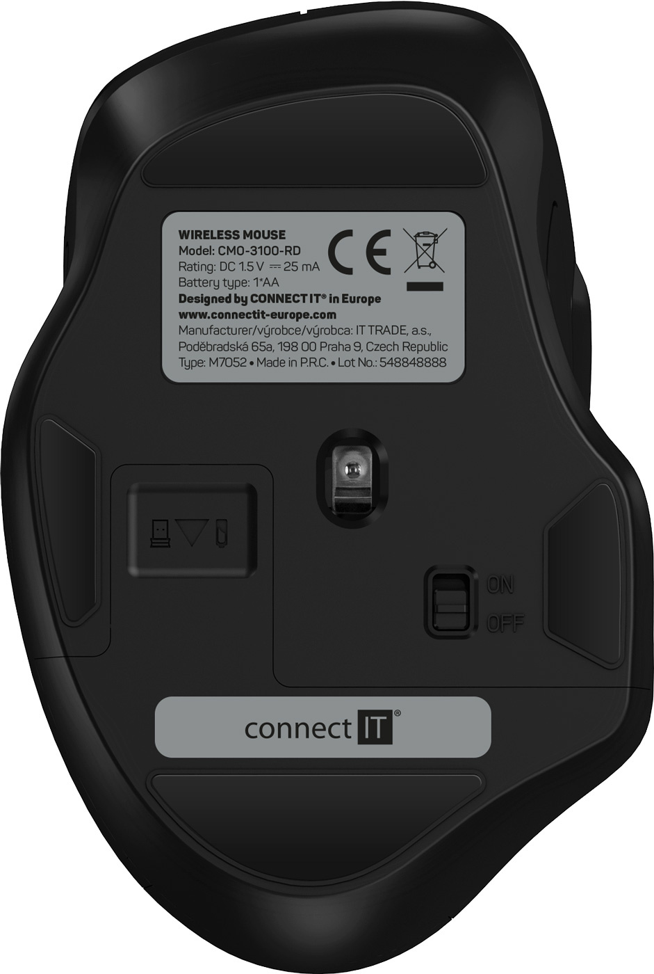 Bezdrátová optická myš s unikátní funkcí SmartSwitch, díky které můžete používat myš střídavě na dvou počítačích nebo noteboocích a libovolně se mezi nimi přepínat. Tato funkce se hodí do domácího i profi kancelářského prostředí, kde se pracuje s jednou myší střídavě na dvou počítačích nebo noteboocích. Jedinečný design myši dovoluje uschovat oba USB Nano příjímače pod krytkou bateriového prostoru ve spodní části myši a zabránit tak jejich ztrátě. Součástí balení je originální alkalická tužková baterie CONNECT IT.