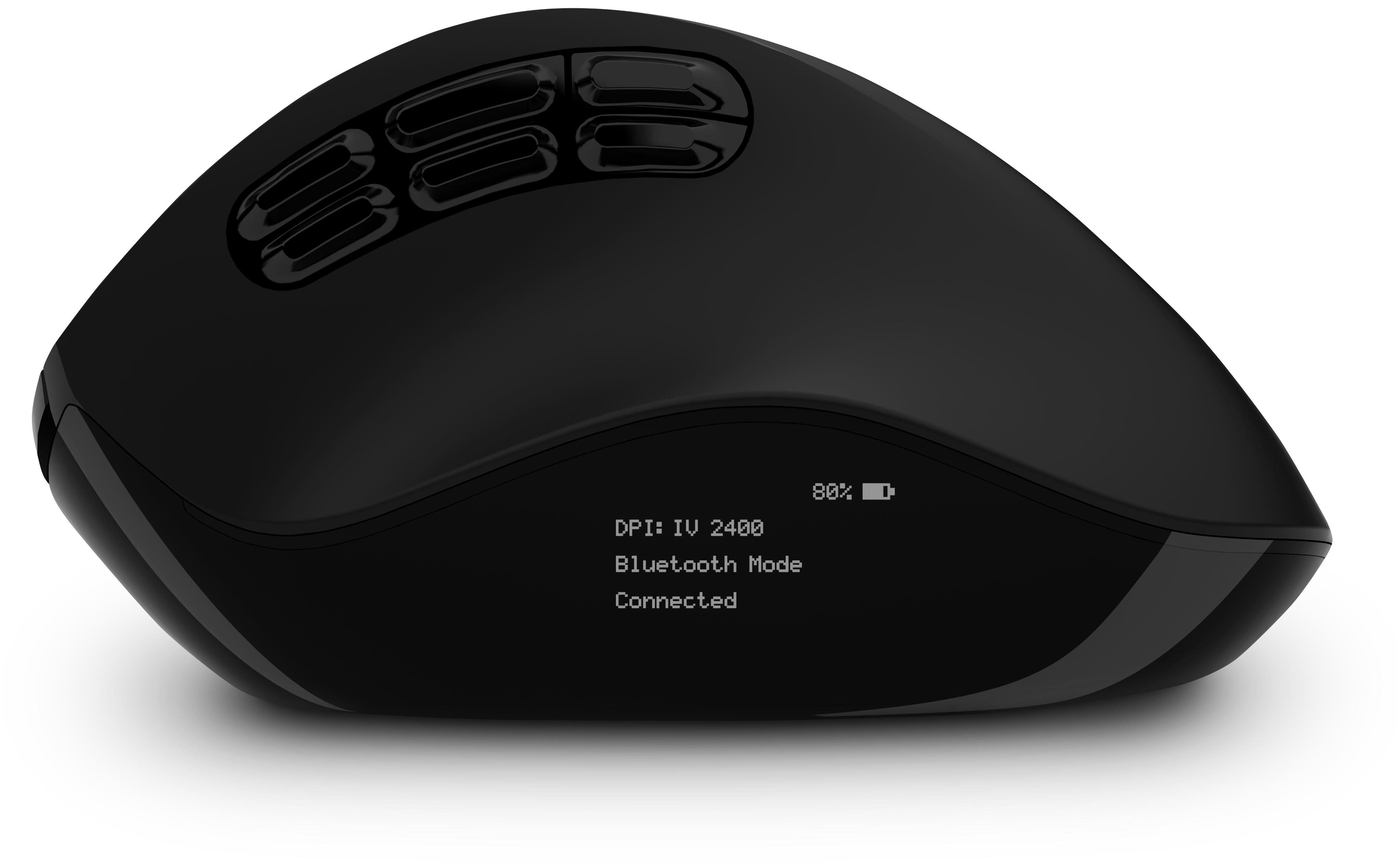 - Aktuální mód myši (2,4 GHz nebo Bluetooth)