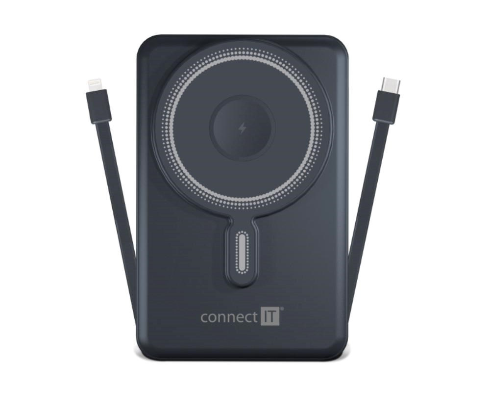 CONNECT IT Powerbanka TravelCharge, MagSafe, 10000mAh, USB-C, Lightning, Šedá