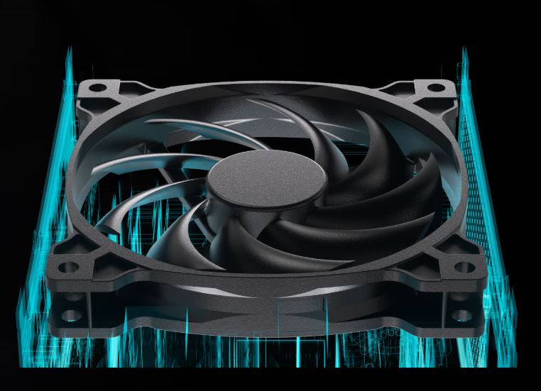 ChladicĂ ventilátor s dynamickĂ˝m loĹľiskem udrĹľuje hluÄŤnost na minimu a reĹľim nulovĂ˝ch otáček zcela eliminuje hluk ventilátoru pĹ™i nĂzkĂ©m aĹľ stĹ™ednĂm zatĂĹľenĂ.