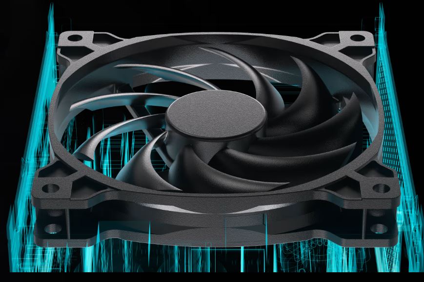 Chladicí ventilátor s fluidním dynamickým ložiskem udržuje hluk na minimu, přičemž režim Zero RPM zcela eliminuje hluk ventilátoru při nízkém až středním zatížení.