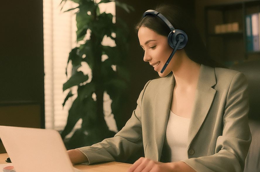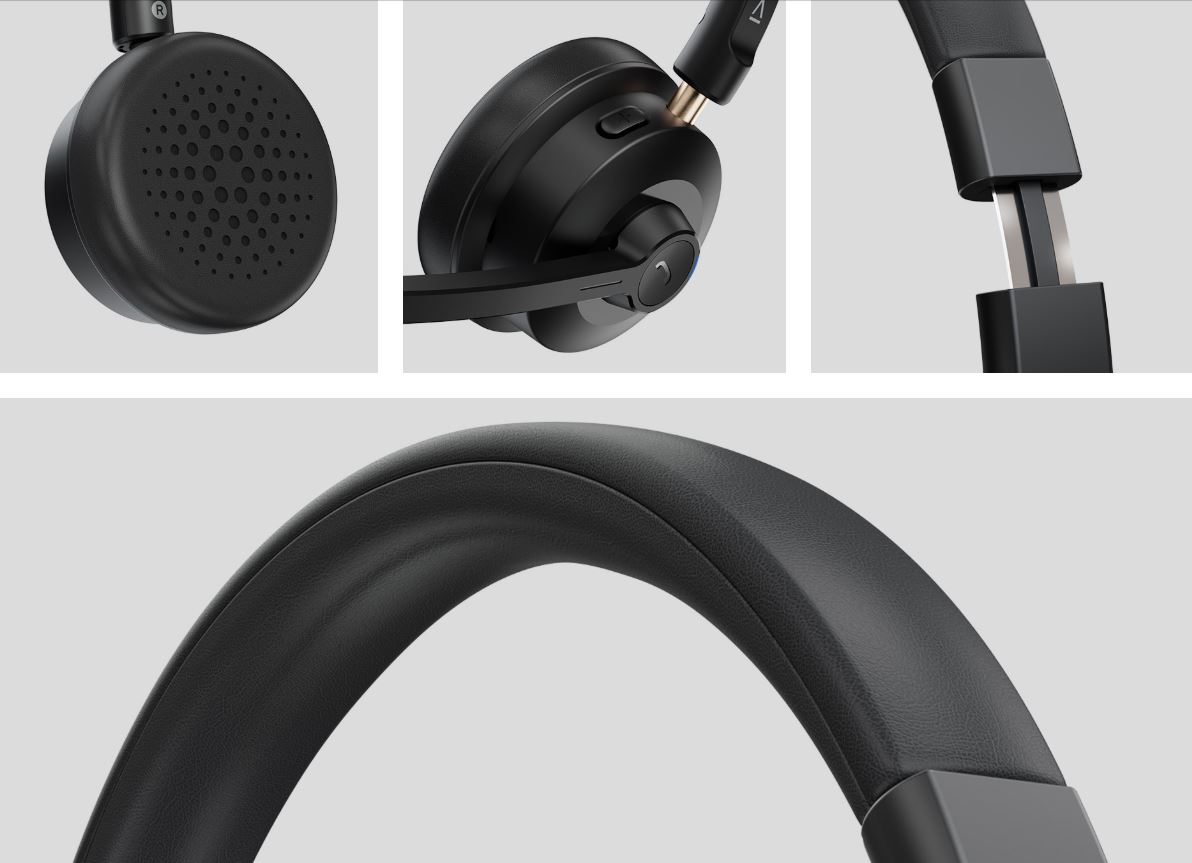 Lehká náhlavnĂ souprava, navrĹľená s ohledem na dlouhĂ© pouĹľĂvánĂ, má ultralehkĂ˝ rám a mÄ›kkĂ© náušnĂky pro pohodlnĂ© nošenĂ.