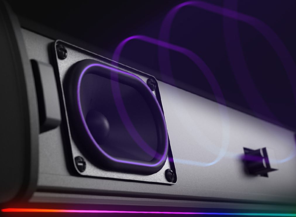 Navrženo pro vaši TV i pracovní stůl, tento soundbar poskytuje bohatý a pohlcující zážitek. Nastavte dokonalou atmosféru výběrem některého z dostupných RGB světelných přednastavení a vytvořte vizuálně ohromující zážitek, který doplní bohatý zvukový přednes. Užívejte si konzistentní zvukový výkon s hlubokými basy díky výkonným racetrack měničům a vestavěnému portu na zadní straně. S maximálním výkonem až 60 W zní vše, od šeptaných dialogů až po ohlušující exploze, jasně a působivě. Technologie SuperWide™ rozšiřuje zvukovou scénu a nabízí pohlcující zážitek i přes kompaktní rozměry. SuperWide nabízí 2 režimy: Near Field pro stolní použití a Far Field pro obývací pokoj. Nyní si můžete užívat hraní s širokou zvukovou scénou ve svém pokoji nebo filmy v obývacím pokoji.