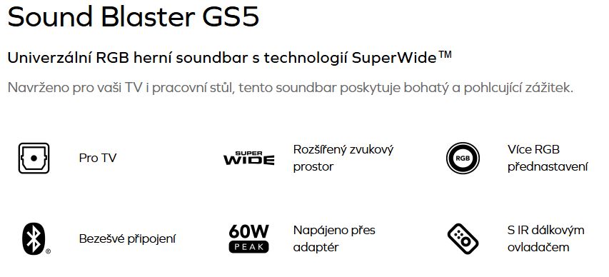 Creative Labs Soundbar GS5/Černá/60W
