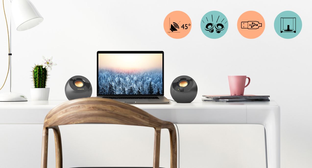 Sada Creative Pebble Plus se bude dĂky dokonalĂ© kombinaci minimalismu a vĂ˝konu s jednoduchĂ˝m ale pĹ™esto jasnÄ› definovanĂ©m designem skvÄ›le vyjĂmat i na Vašem stole.