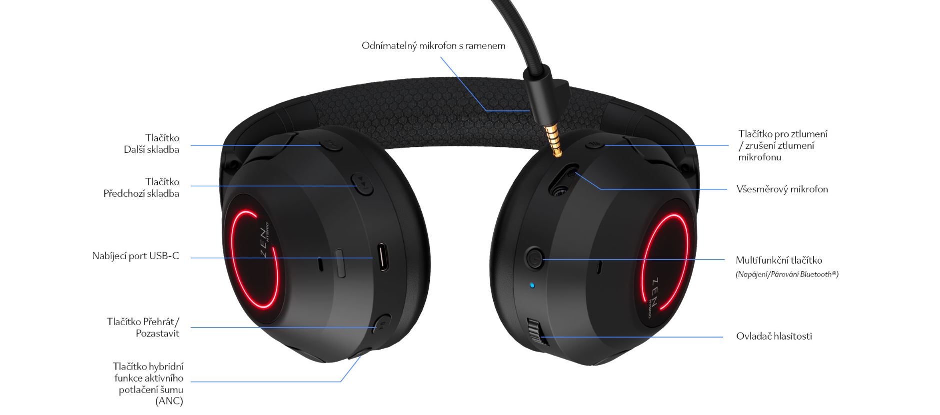 ÄŚtyĹ™i speciálnĂ mikrofony funkce hybridnĂho aktivnĂho potlaÄŤenà šumu (ANC) - dopĹ™edná a zpÄ›tná vazba - odstraĹujà širšà spektrum okolnĂho hluku aĹľ do -35 dB.