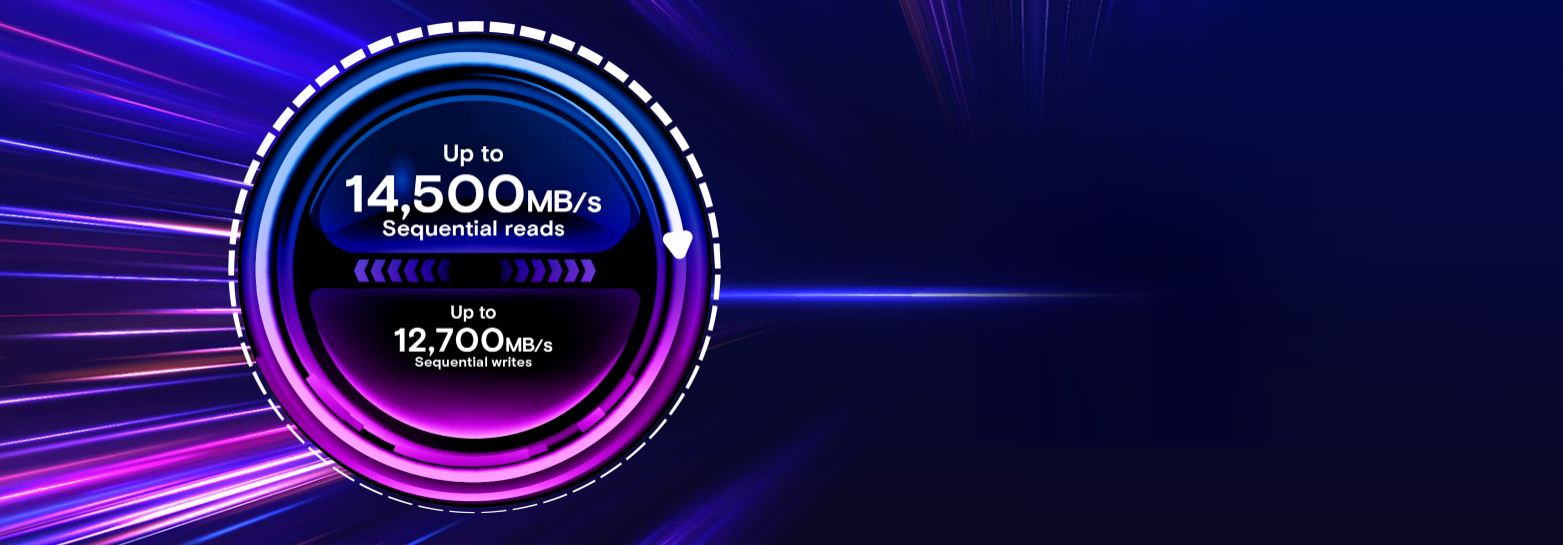 S bleskovým sekvenčním čtením a zápisem2 až 14 500/12 700 MB/s Crucial T705 předčí, překoná a zastíní včerejší nejrychlejší SSD disky. T705 maximalizuje technologii Gen5 s téměř 2x vyšším výkonem5 než SSD Gen4, aniž by se výrazně zvýšila spotřeba energie.