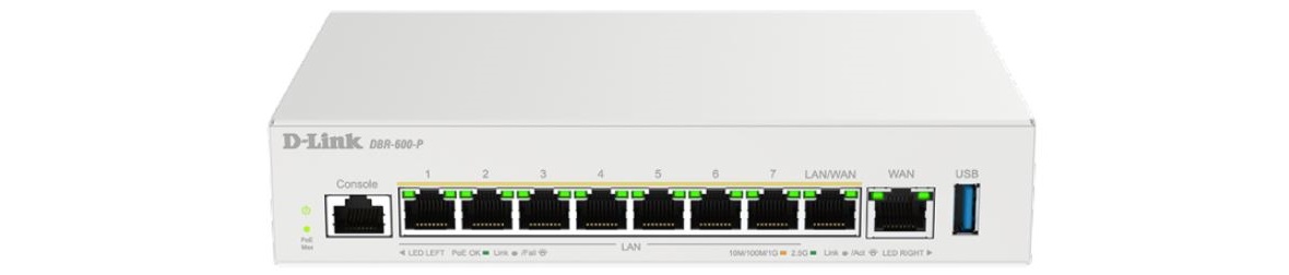 DBR-600-P nabízí vysoce výkonné síťové připojení s 2,5GE WAN portem a osmi 2,5GE PoE porty pro rychlé a spolehlivé připojení.