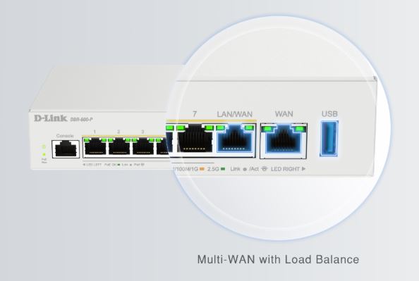 KromÄ› jednoho WAN/LAN portu, kterĂ˝ lze nastavit jako sekundárnĂ WAN, port USB nejen rozšiĹ™uje sluĹľby integracĂ s 4G/5G adaptĂ©rem D-Link pro failover WAN nebo vyvaĹľovánĂ zátěže, ale takĂ© umoĹľĹuje slouĹľit jako externĂ ĂşloĹľištÄ› pro sdĂlenĂ souborĹŻ nebo ukládánĂ protokolĹŻ.