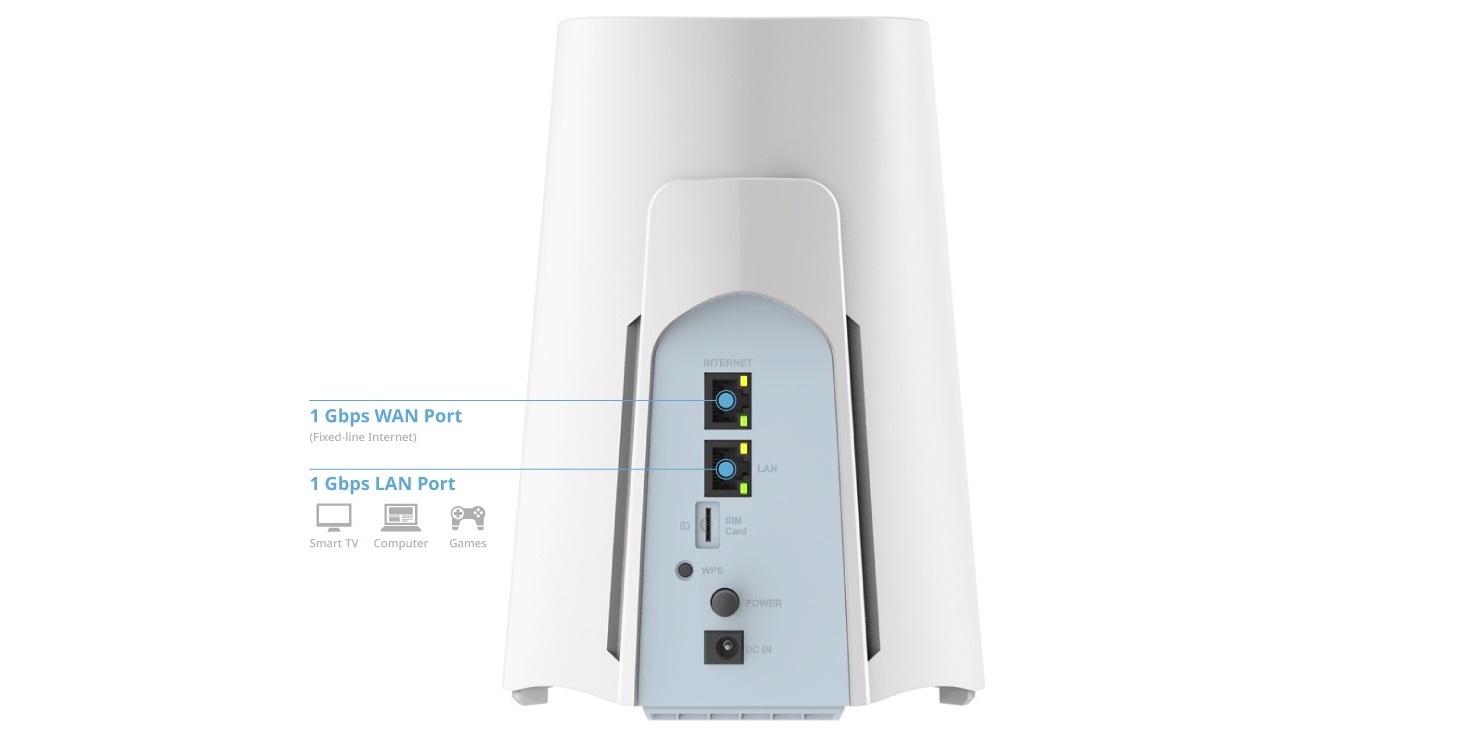 G530 je vybaven jedním gigabitovým ethernetovým portem WAN a portem LAN, takže může fungovat jako Wi-Fi router pro vaše primární kabelová zařízení s vysokými nároky, jako je počítač, chytrý televizor nebo herní konzole, a zajistit tak bleskurychlé kabelové připojení.