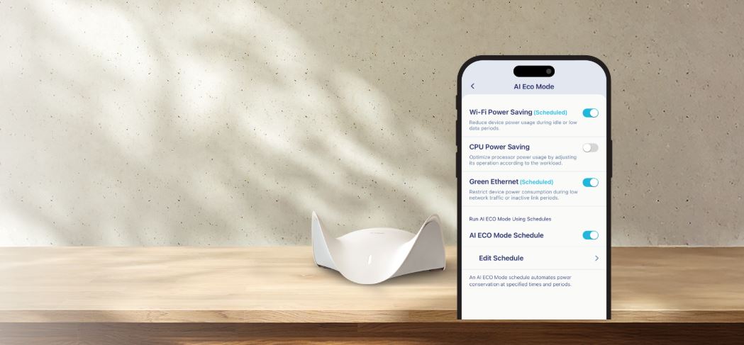 ReĹľim AI ECO sniĹľuje spotĹ™ebu energie dĂky pĹ™izpĹŻsobitelnĂ©mu nastavenĂ, sniĹľuje aktivitu bezdrátovĂ©ho pĹ™ipojenĂ, zatĂĹľenĂ CPU a spotĹ™ebu Ethernetu pĹ™i nĂzkĂ©m vyuĹľitĂ, ÄŤĂmĹľ pomáhá sniĹľovat účty, prodluĹľovat Ĺľivotnost routeru a sniĹľovat dopad na ĹľivotnĂ prostĹ™edĂ.