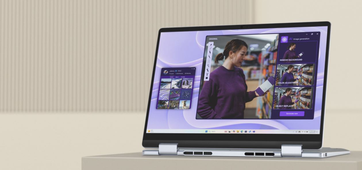 Elegantní 14palcový počítač 2 v 1 s funkcí Copilot+ v zařízení poháněný procesory Intel® Core™ Ultra s ohromujícím výkonem, který pohání nejnovější zážitky s umělou inteligencí, a neuvěřitelnou výdrží baterie pro bezproblémový multitasking na cestách s všestrannými pracovními režimy.