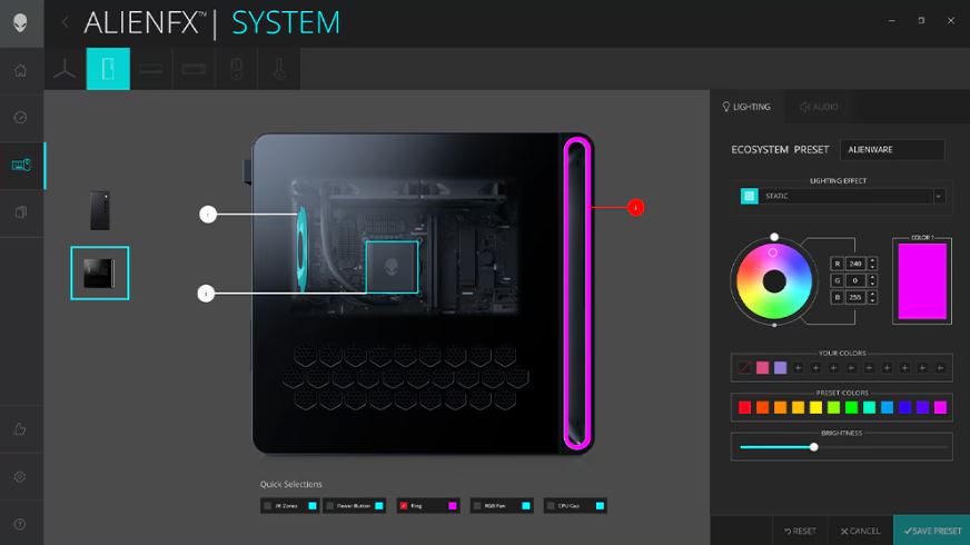 PĹ™edveÄŹte svĹŻj hernĂ styl pĹ™izpĹŻsobenĂm osvÄ›tlenĂ AlienFX v celĂ©m ekosystĂ©mu Alienware, kde máte k dispozici miliony barevnĂ˝ch kombinacĂ.