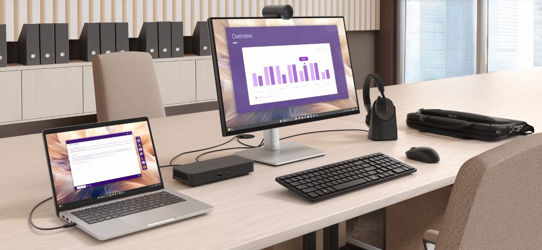 Elegantní úzké okraje na prostorném displeji s poměrem stran 16:10 poskytují o 5 % více místa na obrazovce, takže máte více prostoru pro produktivitu.