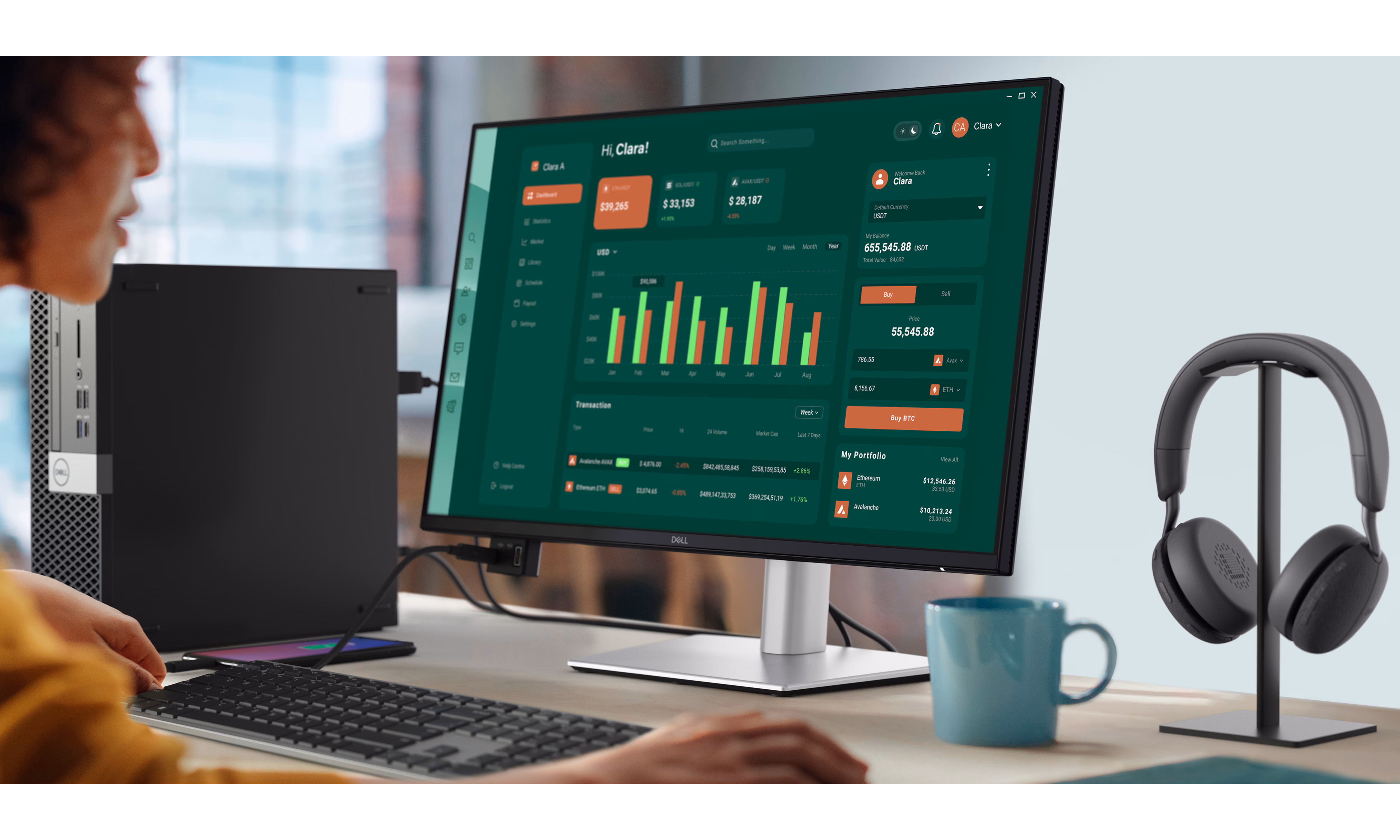 Díky široké škále portů můžete připojit veškeré příslušenství a vytvořit si ideální pracovní prostředí, které maximalizuje vaši produktivitu.Navrženo pro pohodlí a styl s funkcemi nastavitelnosti a ultratenkým rámečkem.