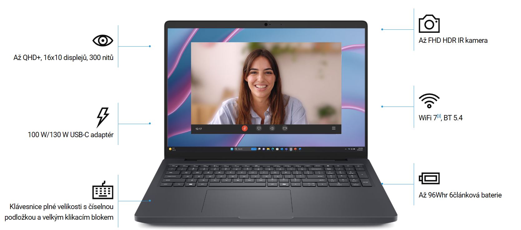 * Displej: 16" FHD+ LCD with 300 nits, Non-touch, FHD RGB Camera, Microphone, WLAN