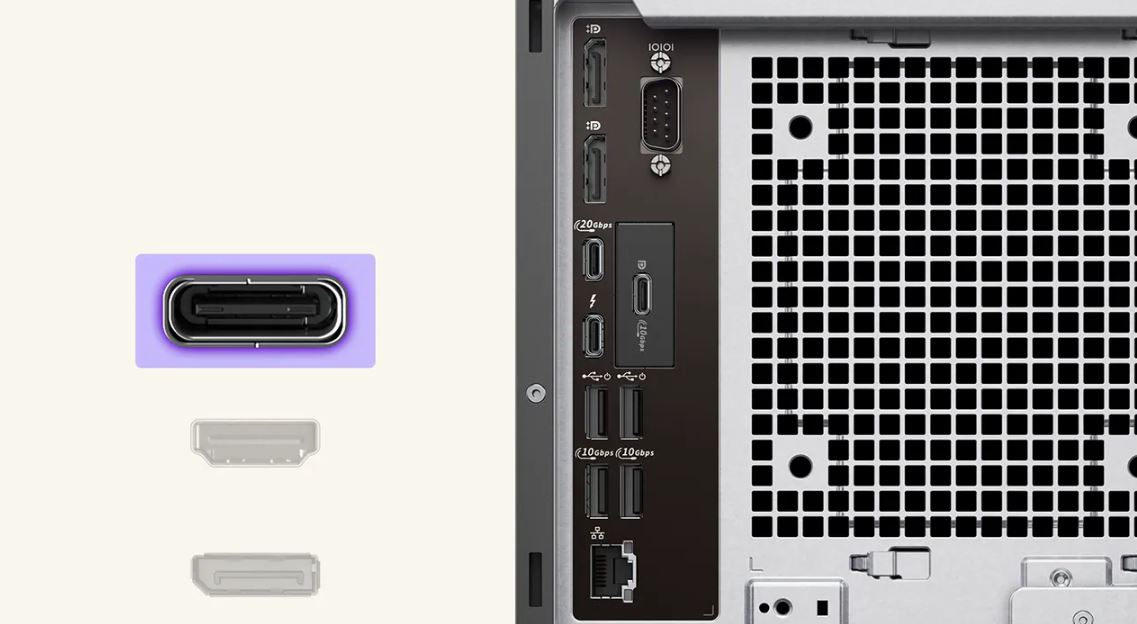 *1x Optional port (TBT4 (40Gbps) + USB-C (10Gbps) data , DP alt-mode Type-C (10Gbps), HDMI 2.1, DP 2.1, 5Gbe LAN, 2x USB-A 3.2 (10Gbps), VGA, 5GbE Optical)