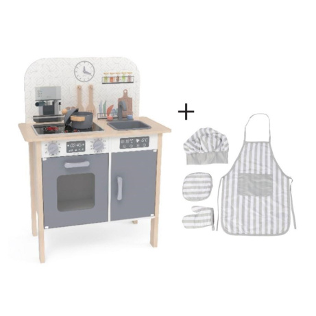 Menší dětská kuchyňka v neutrálních barvách, doplněná o bohaté příslušenství a textilní kuchařský set ZDARMA, promění holčičky i chlapce v opravdové kuchaře. Kuchyňka ve skandinávskému stylu, se spotřebiči a parádními doplňky, je vhodná do každé místnosti. Menší dřevěná kuchyňka je edukativní hračkou, která umožní dětem vyzkoušet si vaření, pečení a další činnosti bezpečným dětským způsobem. Při hře v kuchyňce děti zdokonalí své dovednosti a ještě si užijí spoustu zábavy..