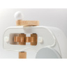 Dřevěný dětský mixér v moderní barevné kombinaci, v setu s dřevěným příslušenstvím, je edukativní hračkou, která umožní dětem vyzkoušet si práci s kuchyňským robotem bezpečným dětským způsobem. Otáčení páčky v horní části mixéru uvede mixér do chodu a tím dodává hračce reálný nádech. Dětský mixér s mísou, dřevěnými ingrediencemi a potravinami, krájecím vejcem a výměnnými nástavci nesmí chybět v žádné dětské kuchyňce..