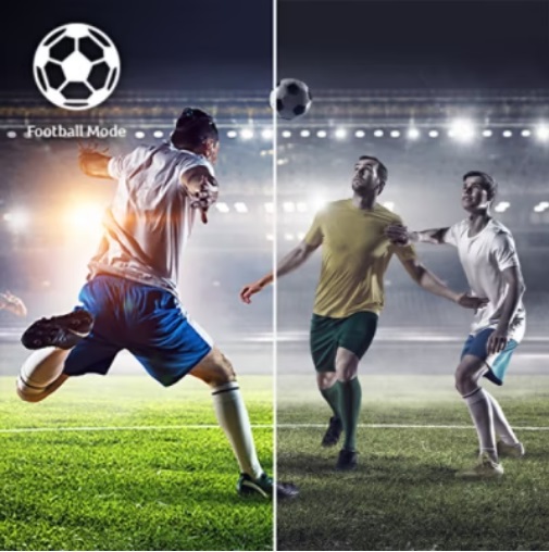 Sejděte se s přáteli a sledujte společně svůj oblíbený sport na obří obrazovce. Fotbalový režim zvýrazňuje barvy a zřetelně reprodukuje všechny akce.