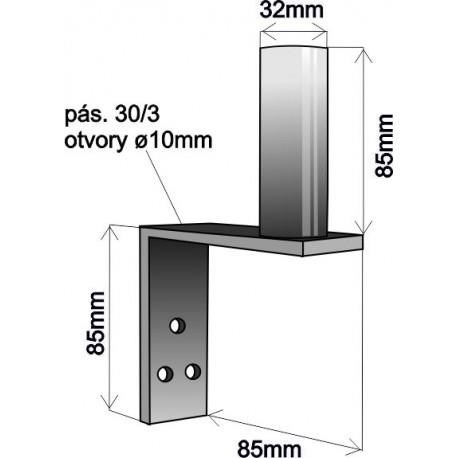 Držák antény na zeď mini, délka 8,5cm, výška 8,5cm