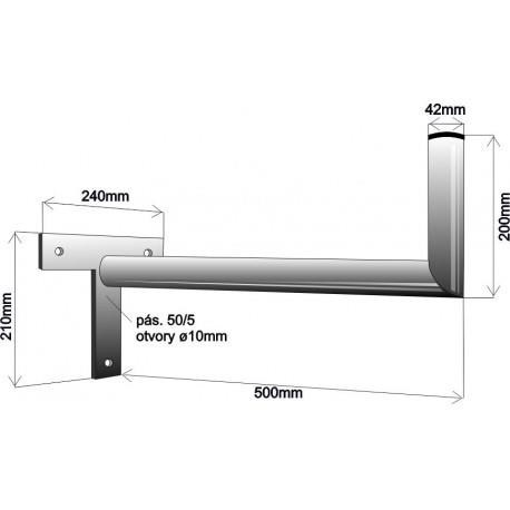Držák antény na zeď, tvar T, galvanický zinek, délka 50cm