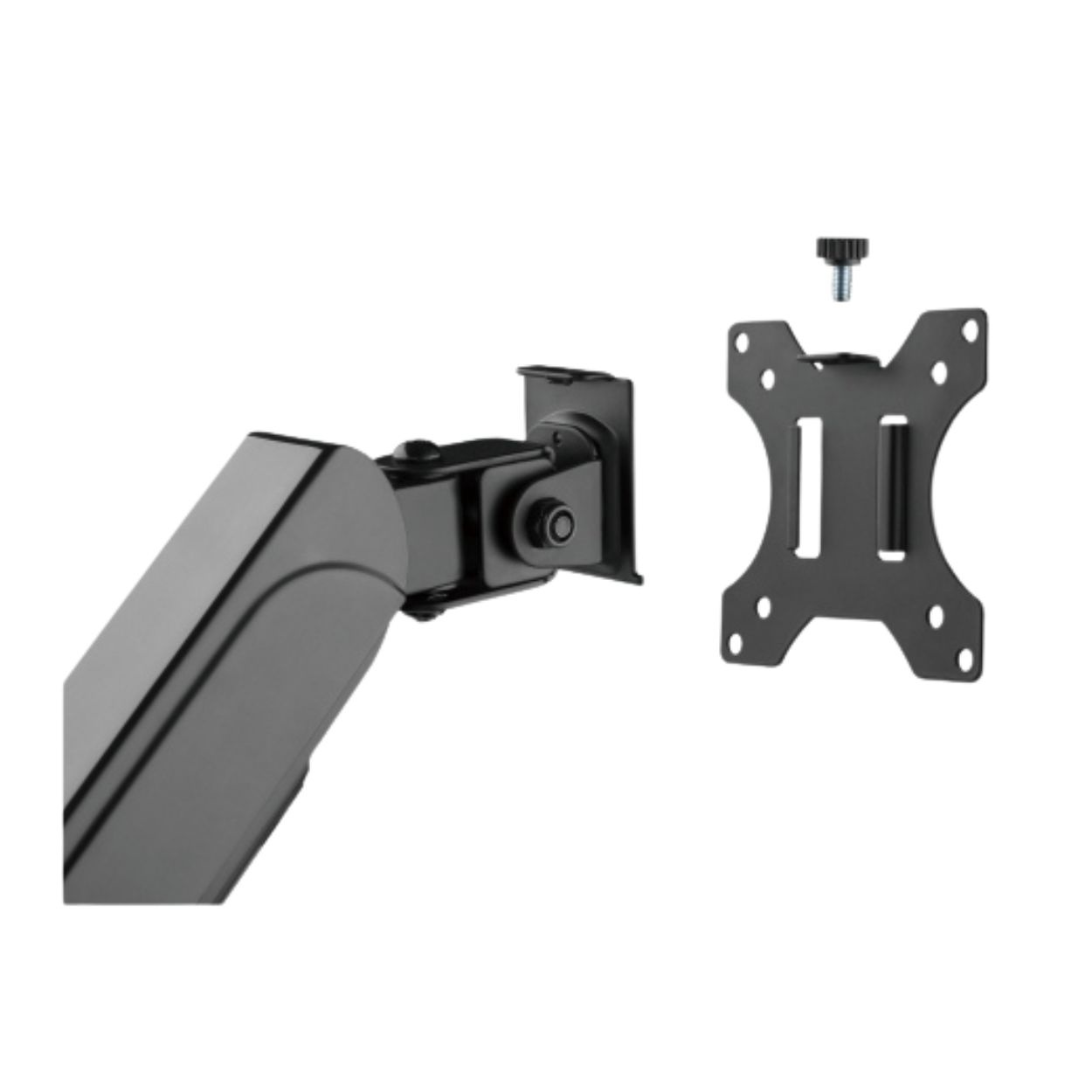 • Flexibilní nastavení polohy: Držák umožňuje snadné nastavení výšky pomocí plynové vzpěry, nastavitelný náklon monitoru v úhlu +35° / -35°, otočení monitoru o 360°, nastavení úhlů ramene o 180°, takže můžete snadno najít optimální pozici pro pohodlné a ergonomické používání. Odnímatelná deska VESA umožňuje snadnou instalaci monitoru.