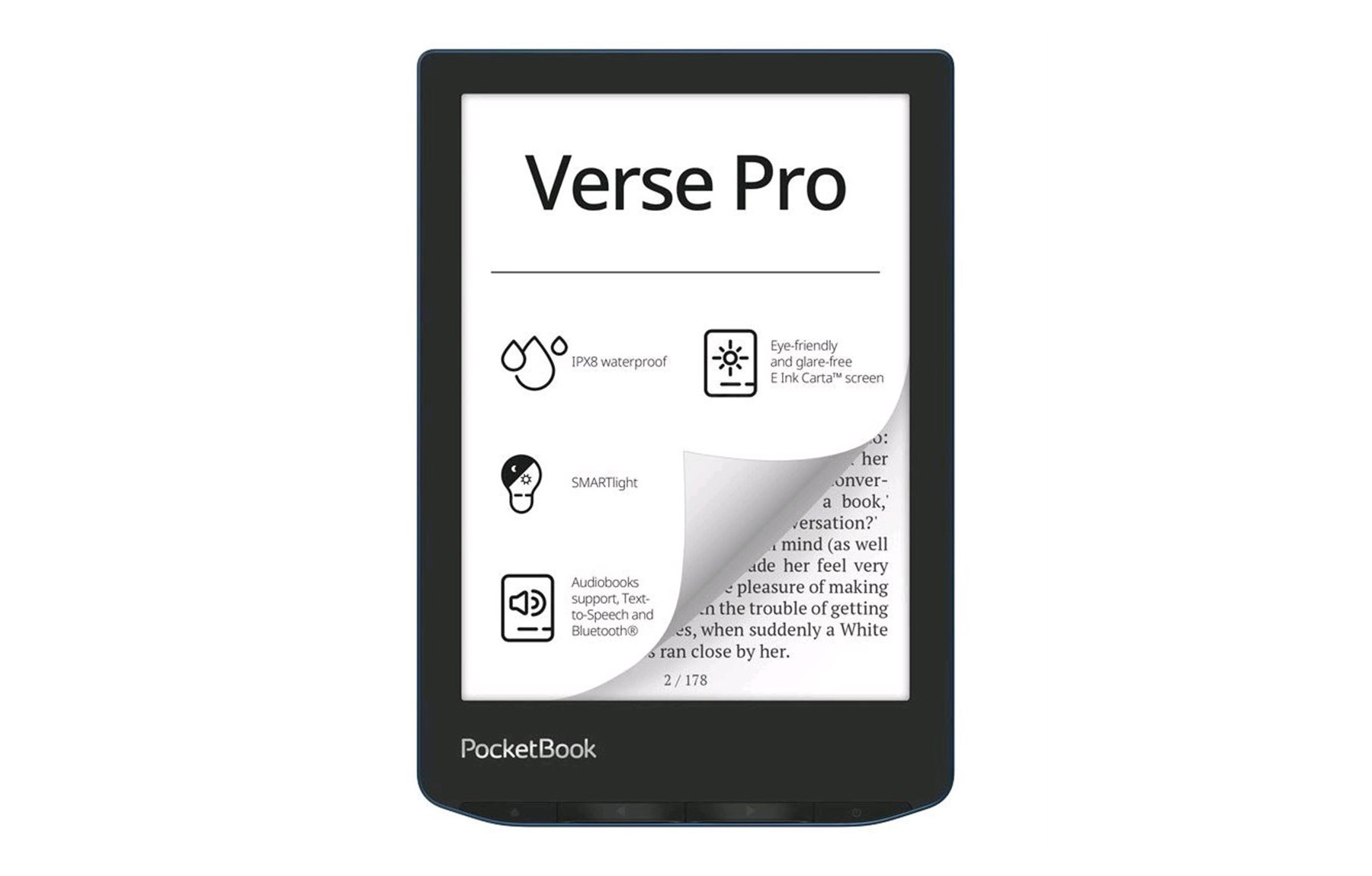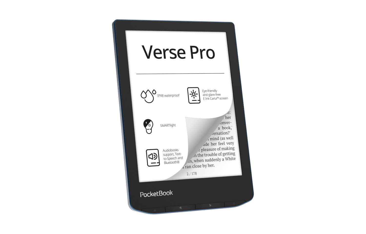 PocketBook Verse Pro splňuje normu IPX8, takže lze ponořit do až 2 m pitné vody na 60 minut.