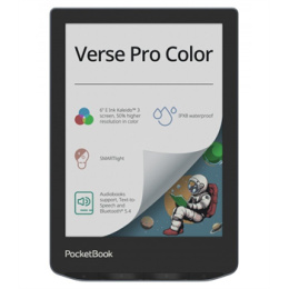Čtečka PocketBook 634K3 Verse Pro vám zajistí komfortní a kvalitní sledování široké škály obsahu – od beletrie a učebnic až po mangu nebo komiksy. Veškerý obsah na čtečce je skvěle čitelný díky 6palcovému displeji s barevnou obrazovkou E Ink Kaleido™ 3, která dokáže zobrazit 4 096 barev, ale zároveň chrání zrak před oslněním. Elektronická čtečka PocketBook skvěle padne do ruky, proto ji můžete používat kdekoli a kdykoli budete chtít. Zařízení podporuje 25 knižních a grafických formátů a navíc ještě nabízí podporu 6 zvukových formátů. Čtečka obsahuje funkce převodu textu na řeč, Bluetooth připojení či podpory Wi-Fi či cloudového připojení. Norma ochrany IPX8 zajišťuje odolnost proti vodě při ponoření do sladké vody až do hloubky 2 metrů po dobu 60 minut. Barevná verze Stormy Sea se navíc pyšní stylovým tmavě modrým provedením, které působí elegantně a moderně.