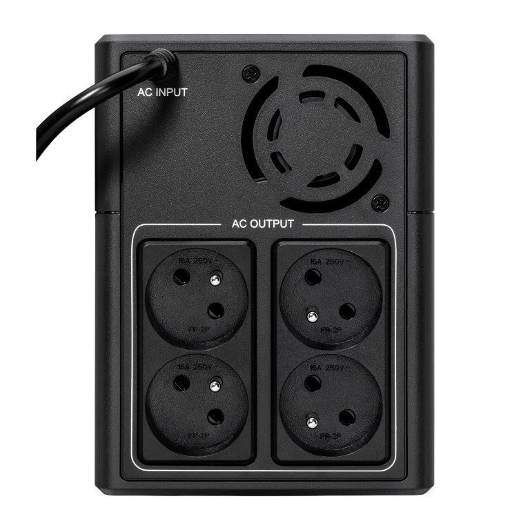 | Zvláštní charakteristiky | Regulace napětí AVR (Automatic Voltage Regulation) Šetří místo díky kompaktnímu Tower designu USB port pro automatickou integraci s hlavními operačními systémy (Windows / Mac OS / Linux) Zahrnuje čtyři FR zásuvky |