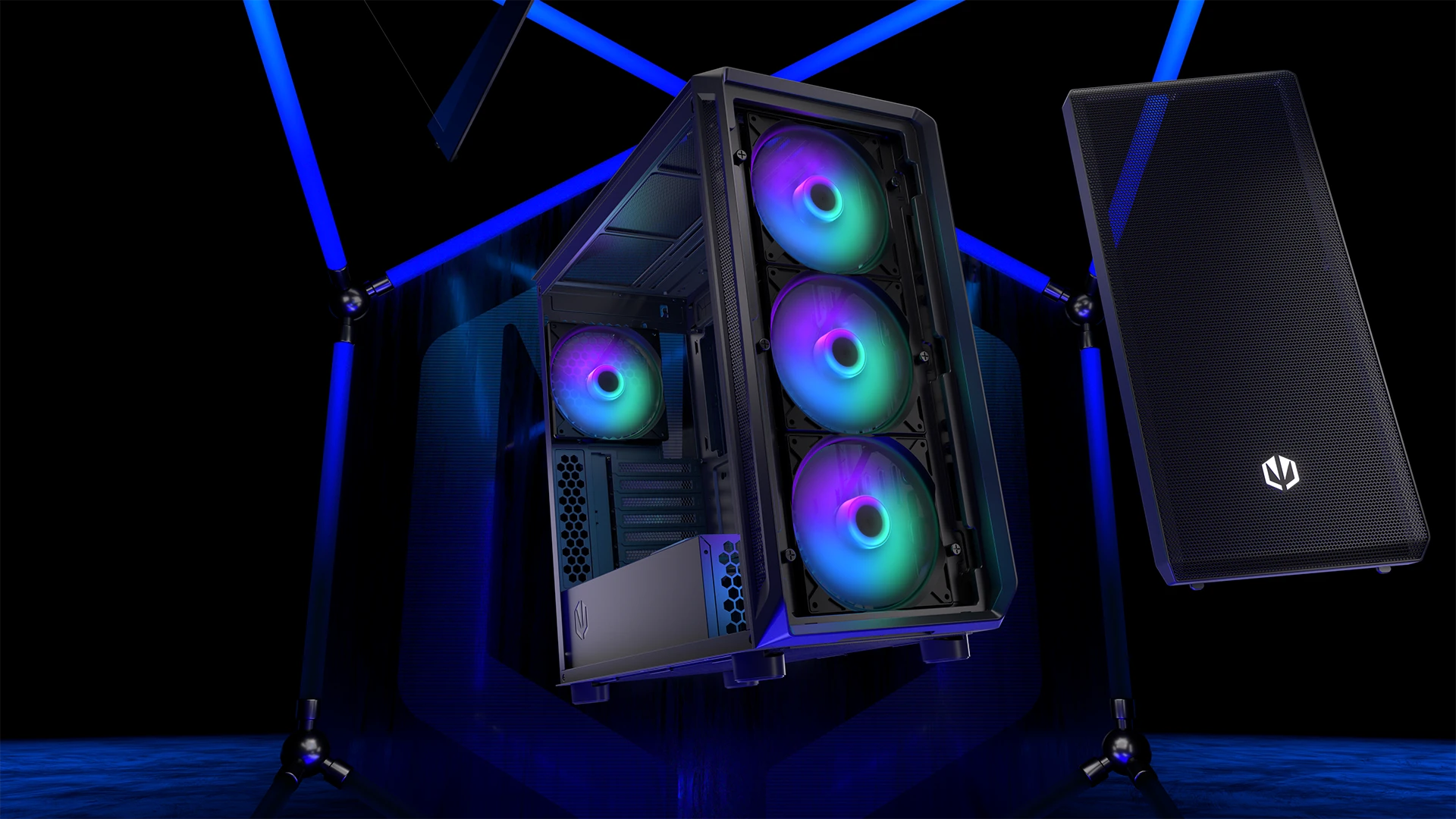 Jedná se zatím o největší dostupnou PC skříň (486 × 228 × 472 mm) s logem ENDORFY. Arx 700 ARGB se bude skvěle hodit pro vaše komponenty - například vysoký systém chlazení (až 179 mm), 8 ventilátorů (včetně 4 Stratus 140 PWM ARGB, které dostanete pro začátek) a prakticky jakoukoli dostupnou grafickou kartu (až 410 mm). Zároveň je udržuje v lehkém průvanu, jako svěží ranní vánek na horské louce - díky síťovaným panelům na přední a horní straně.